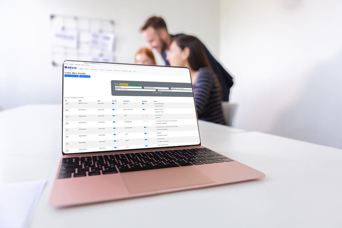 Les applications embarquées sur tous les postes des techniciens de chez Balco sont autonomes et stockent localement, sur leur ordinateur, les suivis de mise en place, d’analyse ou de vérification de conformité des essais réalisés.