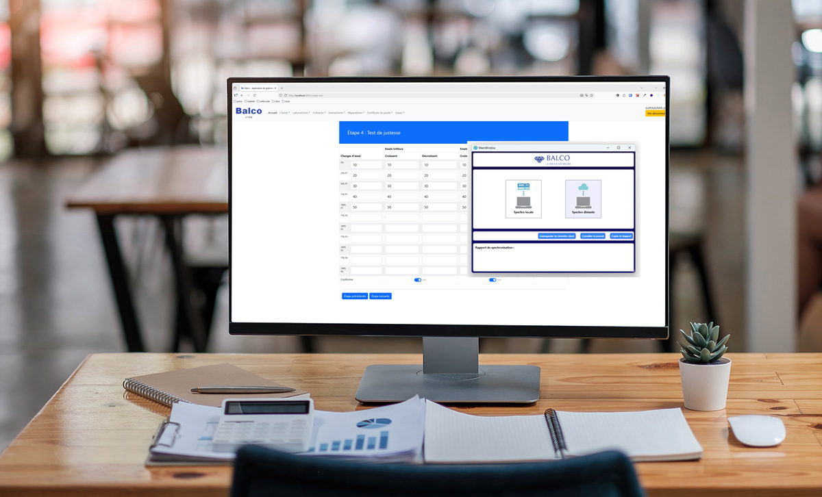Balco nous a missionné pour réaliser un outil hybride « windows / web » permettant de consigner leurs interventions sur les balances scientifiques de leurs clients devant impérativement fonctionner en mode déconnecté afin de pouvoir assurer son utilisation hors réseau.