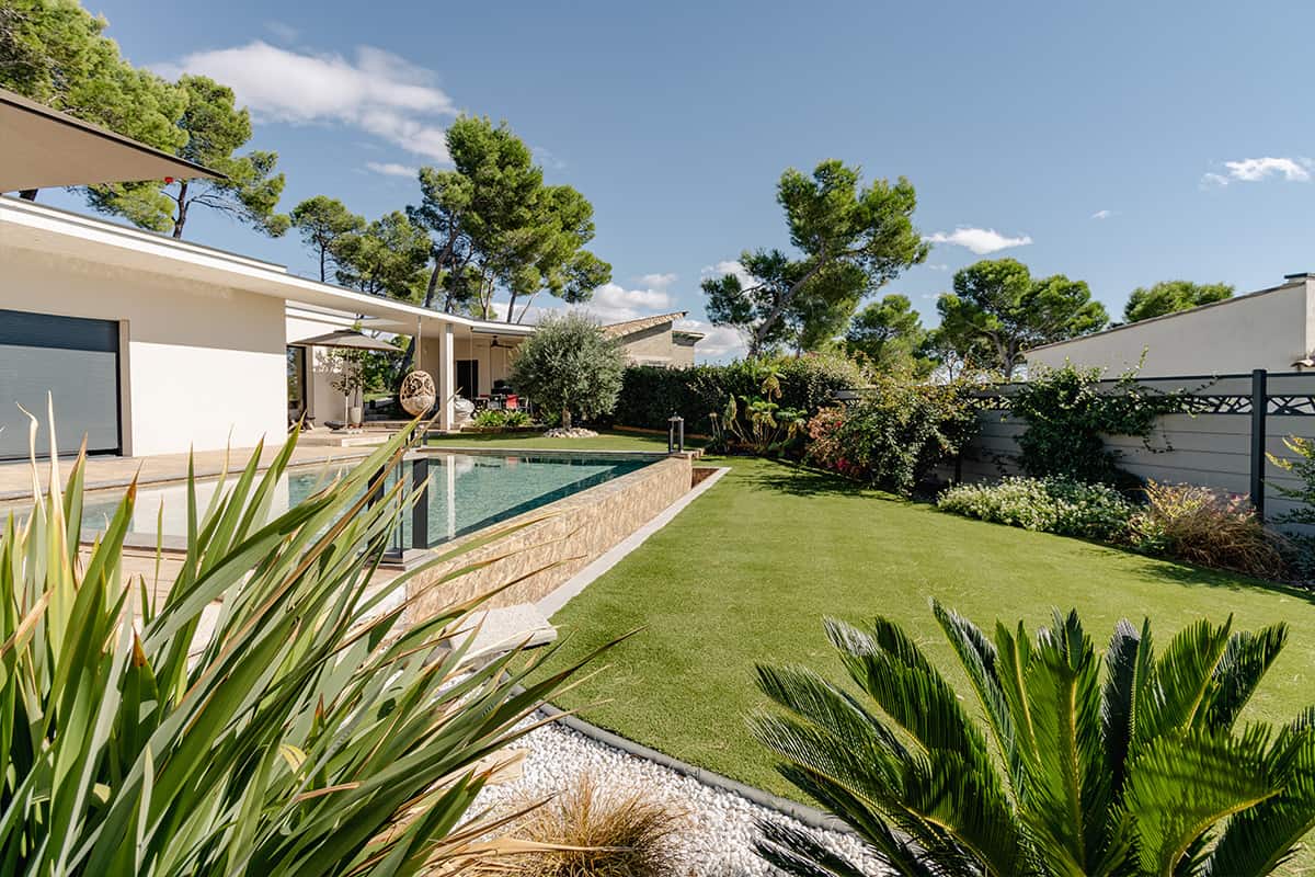 Projet photos d'un espace vert aménage avec maison et piscine sur Nîmes